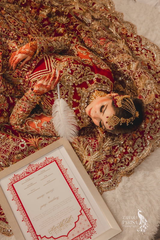 Red Aafreen Nikah Certificate: Gold Foil Embellished