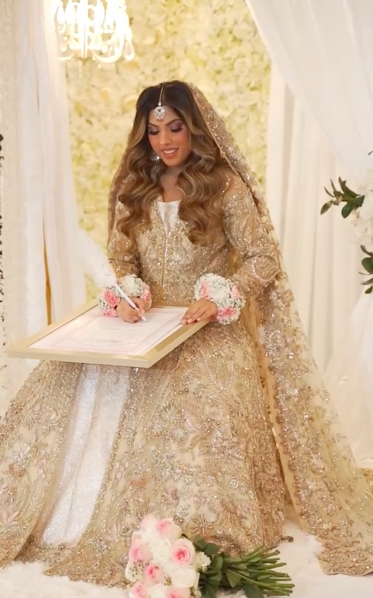 Aafreen Nikah Certificate: Beige with Gold Embellishments