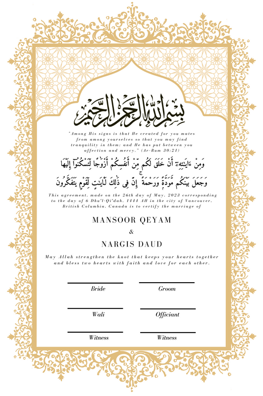 A Symbol of Everlasting Love, Commemorate Your Bond with an Exquisite Islamic Marriage Certificate by NikahCollections